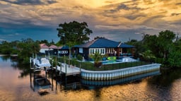 A One-of-a-Kind Masterpiece on the Water! Welcome to 3001 Banyan Way, Punta Gorda, completed in 2024, where architectural artistry meets uncompromising luxury. Set on a prime waterfront lot with intersecting canal views, 211 feet of seawall, and remarkable sunsets, this bespoke residence was crafted with every imaginable upgrade to create a true designer dream home. Simply stunning! From the moment you arrive, the curb appeal is undeniable— ultra modern and powerful exterior colors inspire the senses. A visual delight are the many exterior accents including Hardi Trim Board and Batten cement siding, an expansive lighted retaining wall, offset garage and connecting breezeway with smart wood beam pillars. Professional landscaping with designer lighting, an interlocking three-piece paver driveway and an iron fence with three locking gates frame the back of the property all the way to the seawall. Step onto the Chicago replica brick front porch, beneath a tongue-and-groove ceiling with recessed lighting, and through an impressive iron entry door. Inside, every room tells a story of craftsmanship and indulgence. The living room stuns with Venetian plaster tray ceilings, dramatic beams, a 100-inch linear fireplace, and a full quartzite feature wall. The gourmet kitchen is a showpiece: Dolomite Blue quartzite countertops throughout, GE Café matte white appliances including a six-burner propane range, two under-counter refrigerators, and full-height subway tile backsplash with a quartzite shelf. A walk-in pantry and adjoining laundry doubles as a bar and prep space, featuring cobalt blue GE smart appliances, built-in storage, a liquor drawer, and a chandelier-lit window seat. The master suite is a sanctuary with Venetian plaster finishes, custom ceiling design, and a spa-like bath offering a freestanding tub under chandelier light, a walk-through shower with body jets, double marble sinks, and artistic feature walls. Additional rooms showcase true individuality, including a music room adorned with gold-leaf stucco, a bespoke feature wall, and a dramatic chandelier. Outdoor living reaches resort level. A saltwater, heated PebbleTec pool with LED lighting is surrounded by an expansive paved entertainment deck. The covered rear porch features tongue-and-groove ceilings, an outdoor kitchen with grill and sink, recessed lighting, ceiling fans, and dual French iron doors that invite seamless indoor/outdoor living. At the water’s edge, the composite dock is built for the serious boater, with shore power, a 12,000-lb lift, and oversized pilings ready for a roof structure. Enjoy a 15 minute boat ride along the Venice Waterway to Alligator Creek, then to Charlotte Harbor and the Gulf beyond. Every detail is deliberate: spray foam insulation throughout, tankless water heater, hurricane-impact doors and windows, remote custom blinds, lighting integrated into the eaves and landscaping, the highest grade luxury vinyl plank and soap stone tile flooring, and a full-home generator with hook-up. The oversized 24’x24’ insulated garage is a marvel in itself, with epoxy floors, mini-split A/C, EV plug, storage system, and large windows framing canal views. This residence is more than a home—it’s a statement of taste, design, and lifestyle. Perfectly blending Old World materials with cutting-edge systems, 3001 Banyan Way is truly one of a kind Gem. Minutes from all that Punta Gorda has to offer, Fisherman’s Village, Harbor Walk, the Punta Gorda Yacht Club, excellent restaurants as well as multiple golf courses and marina’s. Don’t miss your opportunity to live the Florida lifestyle you deserve. Call today for a private showing.